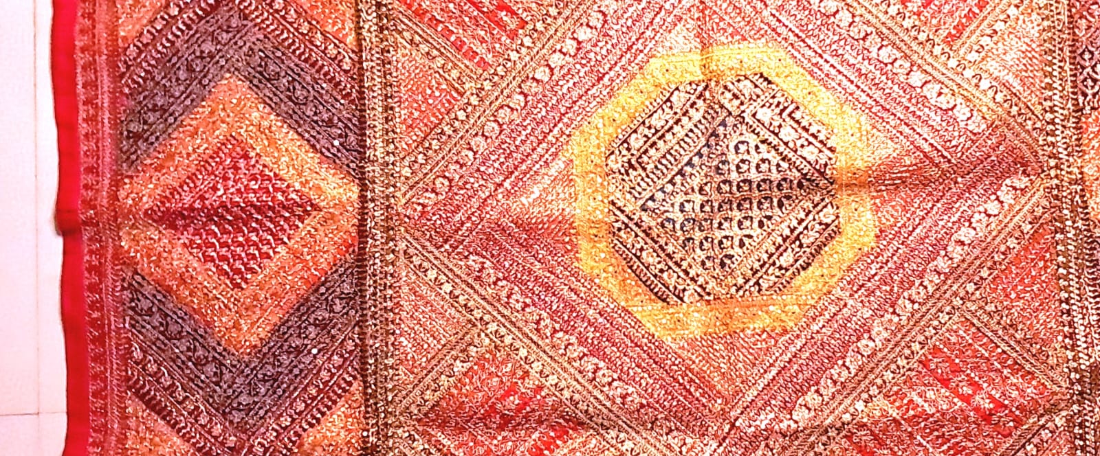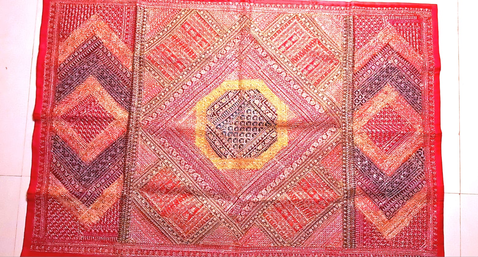 Traditional Khambadiya Patchwork with vibrant, detailed embroidery